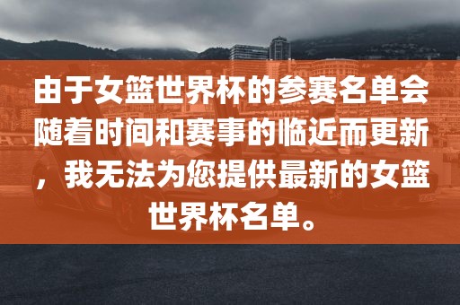 由于女篮世界杯的参赛名单会随着时间和赛事的临近而更新,我无法为您提供最新的女篮世界杯名单。