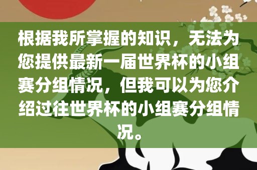 摘要:本文概述了世界杯的小组赛分组情况。虽然无法提供最新一届世界杯的分组信息,但可以介绍过往世界杯的小组赛分组情况,包括不同球队之间的搭配和竞争情况。