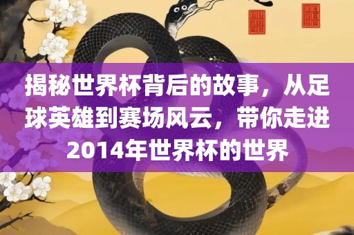 摘要:本文将带你走进2014年世界杯的世界,揭示背后不为人知的故事。从足球英雄到赛场风云,感受赛场上的激情与荣耀。一起领略世界杯的魅力,体验足球带来的激情与热血。跟随本文,你将深入了解世界杯背后的故事,感受足球的力量和荣耀。