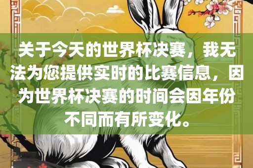 摘要:由于世界杯决赛的时间随年份而异,无法为您提供实时的比赛信息。请关注具体年份的世界杯决赛以获取最新比赛信息。