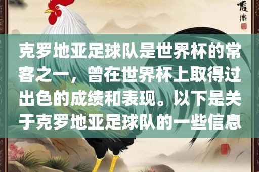 克罗地亚足球队是世界杯的常客之一,曾在世界杯上取得过出色的成绩和表现。以下是关于克罗地亚足球队的一些信息