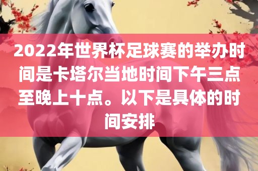 2022年世界杯足球赛的举办时间是卡塔尔当地时间下午三点至晚上十点。以下是具体的时间安排
