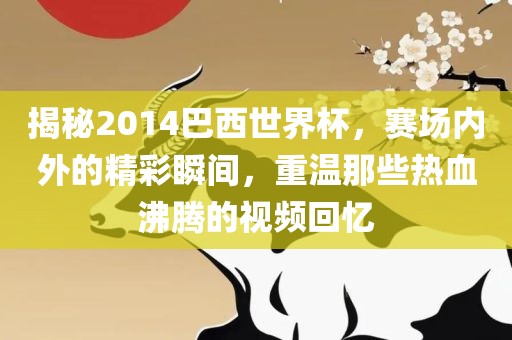 摘要:,,本文带你重温2014年巴西世界杯的赛场内外精彩瞬间,揭示那些令人热血沸腾的视频回忆。文章将为你呈现世界杯的辉煌历程,包括激动人心的比赛瞬间、球员们的精彩表现以及赛场外的点滴趣事。让我们一起感受足球的魅力,重温那段激情四溢的世界杯时光。